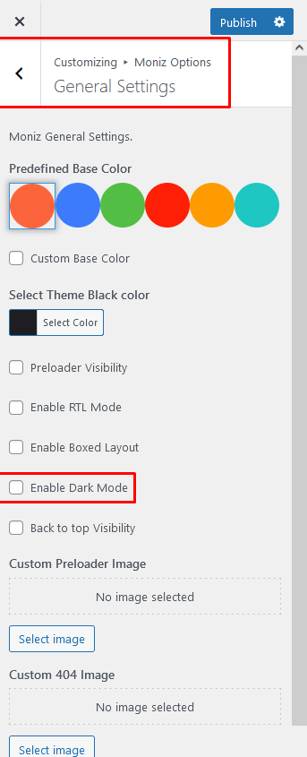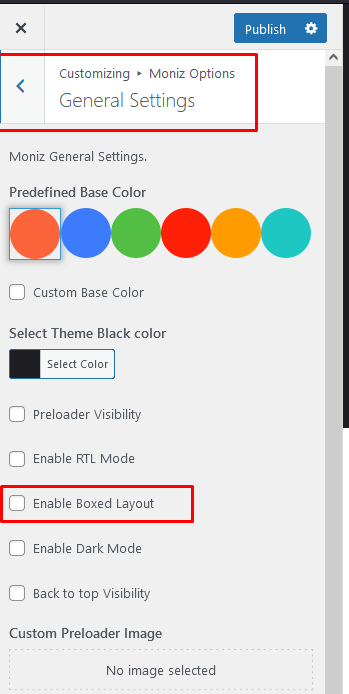 To Enable boxed mode you have to go Appearance>Customize>Linoor Options>General Options> Enable Dark Mode